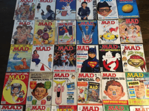 En el pasado, parodias divertidas aparecían no solo en la televisión, sino también en las revistas. Tales eran el caso de Pollo Robot, que son todas hechas con animación stop-motion, y la famosa revista MAD, que tiene todos los diferentes estilos de animación que uno podría pedir. MAD no siempre fue para niños, pero igual otorgarían gran entretenimiento para la familia. De paso, ocasionó sus derivados en otras revistas de parodias como Cracked, Sick y Crazy.